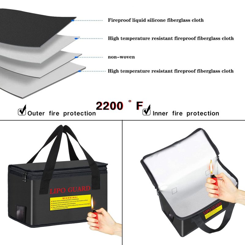 - 【Battery fireproof safe bag】 Lipo Safe Bag to receive your Lipo Battery , With fire, explosion, moisture-proof function, can protect the contents of your bag. It is the best safety assistant for home, travel, camping and office.