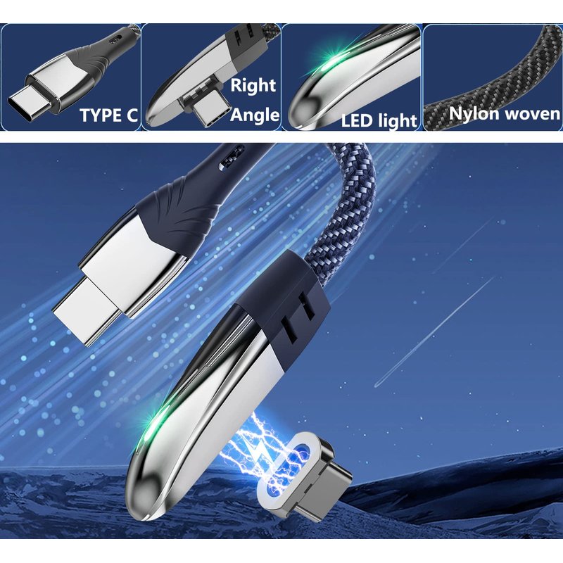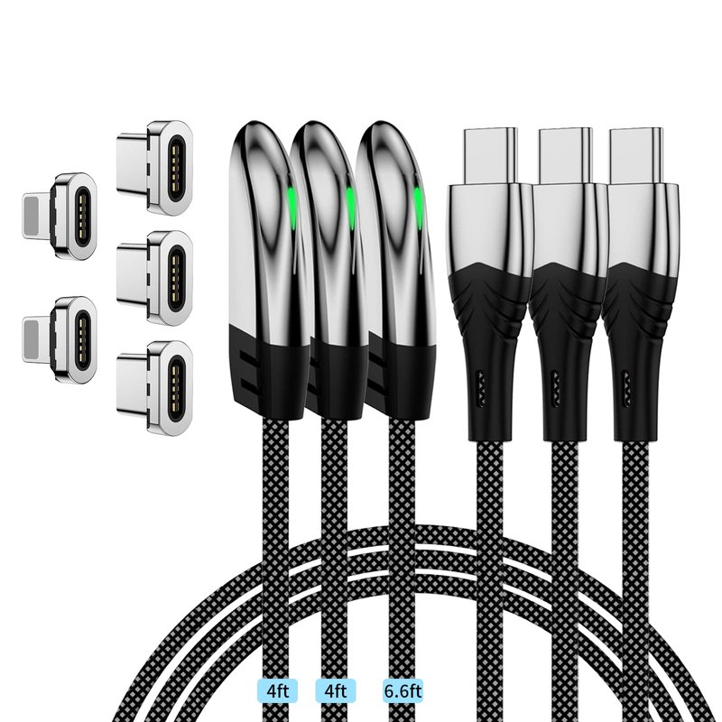 Magnetic Charging Cable, 3-piece iAXBi USB C Right Angle (4ft/4ft/6.6ft) PD60W Phone C-Charger Cable 6 Tips Support 480Mbps Data Transfer Compatible with MacBook, iPad, Galaxy S22 (Gray C Type Right Angle)