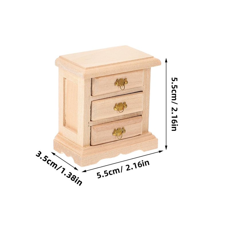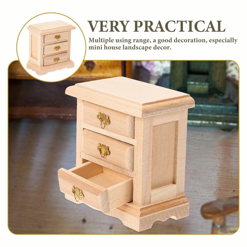 Mini House Furniture Model Its miniature size makes this model for display on a desk. Bedside Cabinet Your kids will this cute and realistic mini furniture model for their dollhouse.Miniature Bedside Cabinet natural wood, safe and wear-resistant.furniture model The Mini Dollhouse Furniture Model is meticulously crafted.doll house accessories Use it to decorate your dollhouse scene, it adds a touch of charm