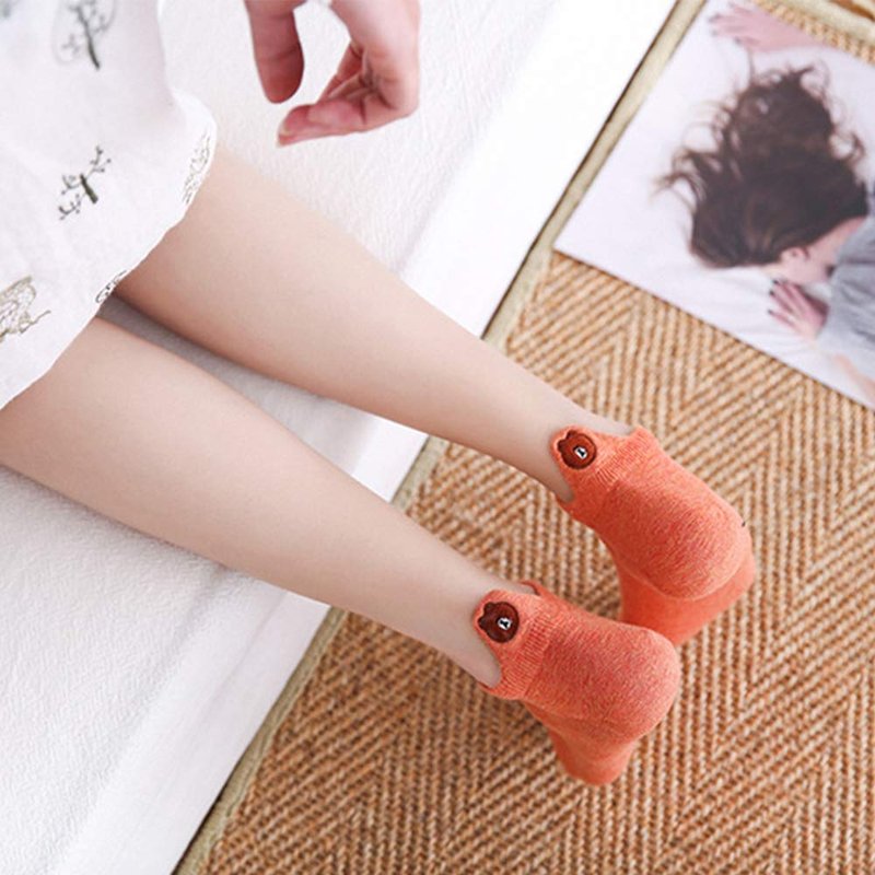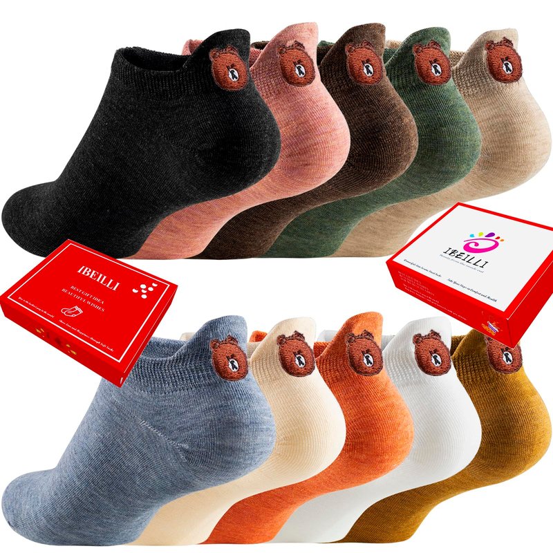 IBEILLI Women Cute Socks 10 Pairs Cotton Kawaii Embroidered Funny Low Cut Socks for Women Girls Ankle Socks (10 Pack Bear with Gift Box)
