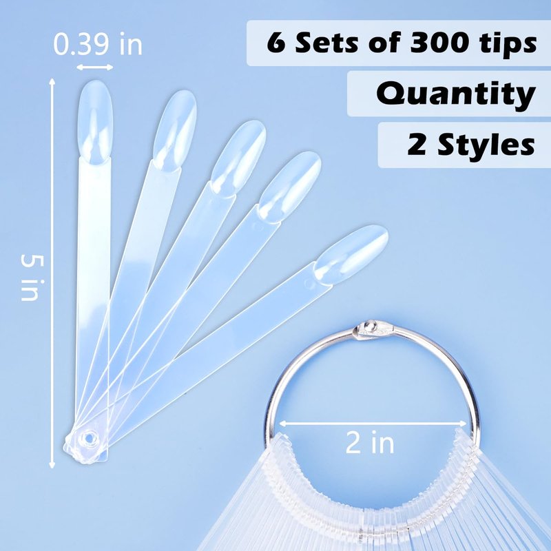 - 【Value Set】You will receive 6 sets of 300 clear nail swatch pop sticks with 6 metal rings, they come in two styles, 150 of each, plenty for nail display, nail art practice and DIY. also comes with 3 numbered stickers from 1-100, you can use these stickers to code the nail art sticks.