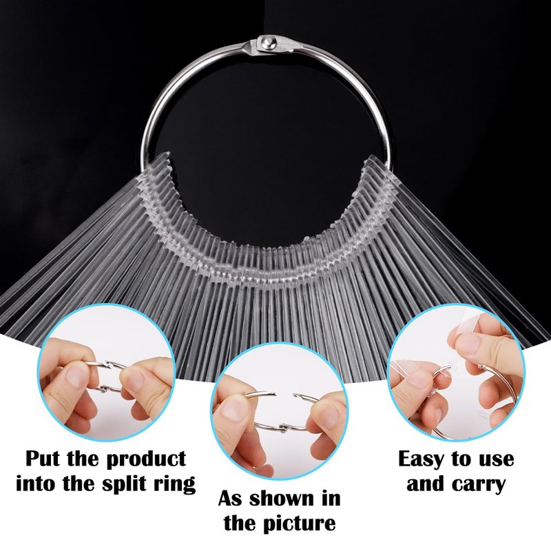 - 【Easy to organize】 Each set of fan-shaped nail colour display art tips includes 50 nail pieces and 1 metal ring, the nail bars are about 10cm/3.94inch long. the metal ring is easy to switch on and off when using, while keeping the nail pieces from falling apart, making it easier to use, organize, carry and store.