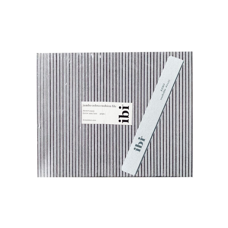 IBI 100 Jumbo Zebra Cushion File (100/100) for Professionals | Washable and Sanitizable Nail File | 100 Grit (50PCS)