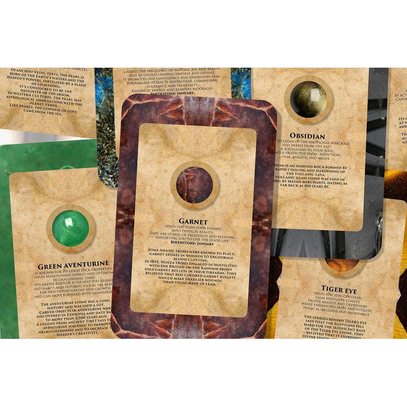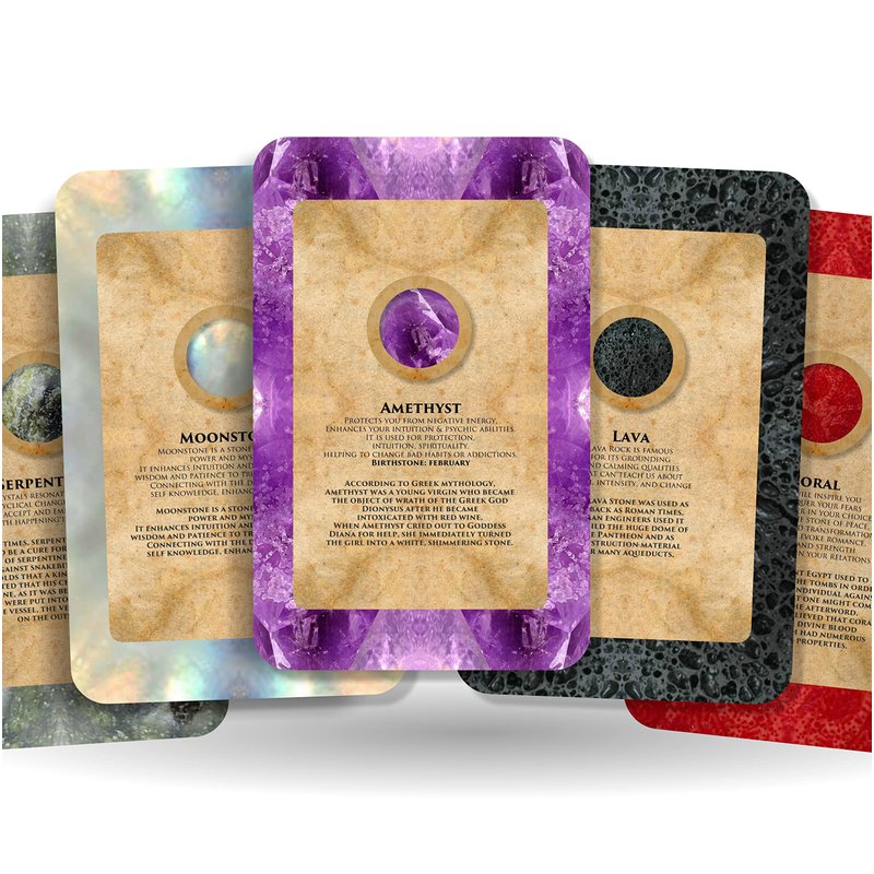 - Illustrated with Gemstone’s attributes: Every card in the deck features a stunning illustration of a gemstone, accompanied by information about its attributes, properties, and history. These illustrations enhance the aesthetic appeal of the deck while providing valuable insights into each gemstone's significance