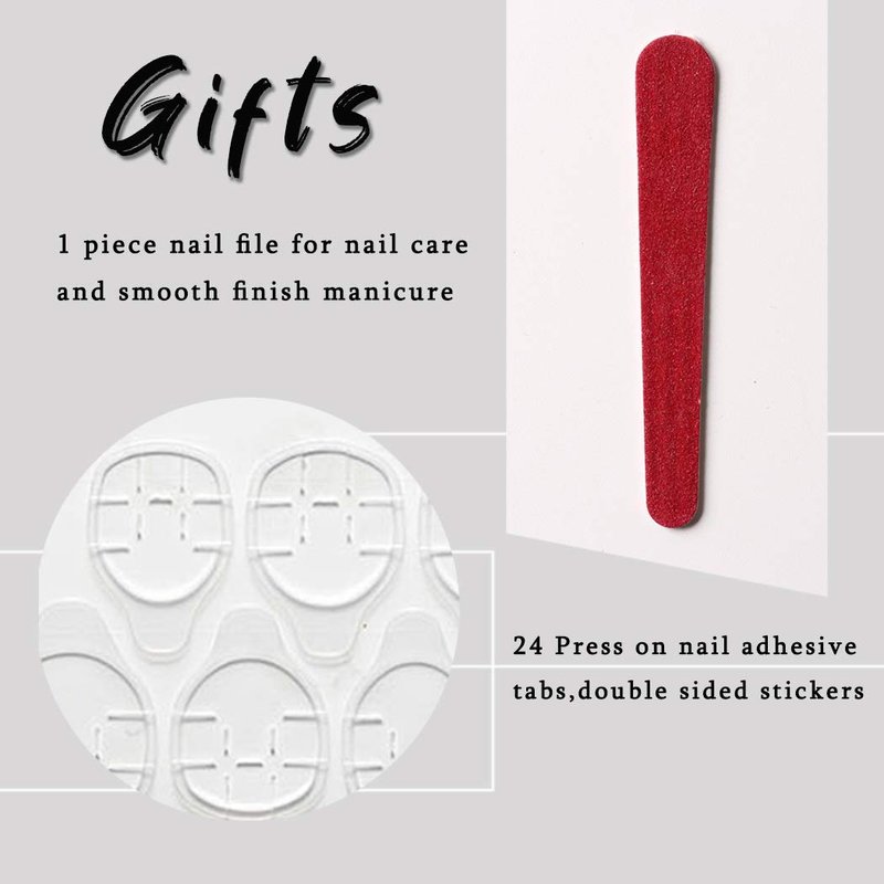 Package: 24 pcs Nails tips ,nail file & glue sticker.