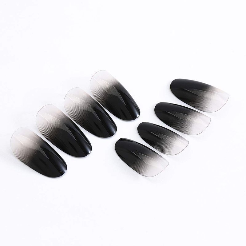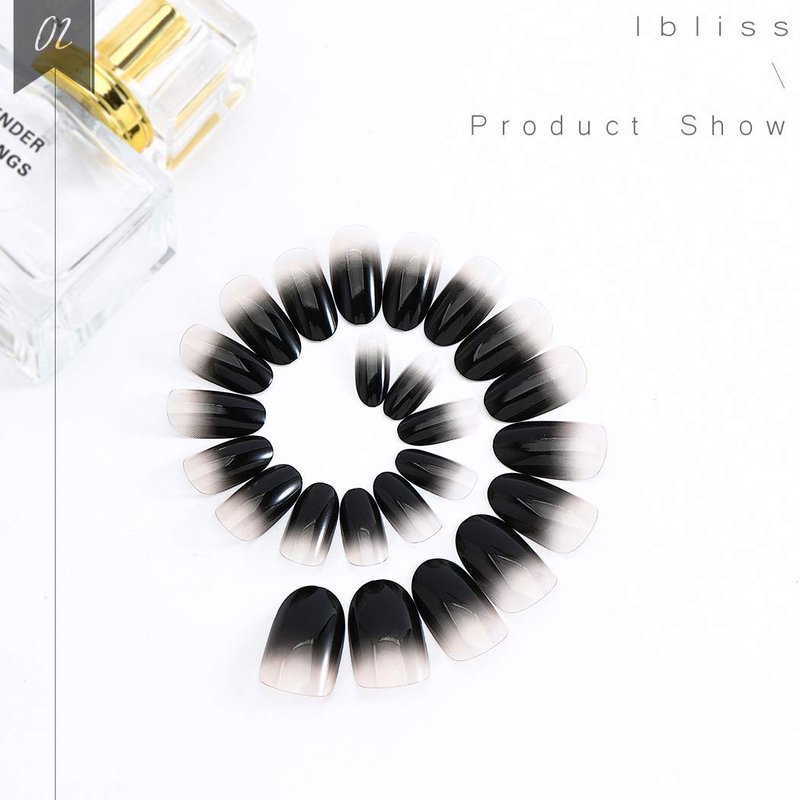 - Black gradient clip on nail in 12 different sizes with 24pcs a box,with free glue stickers and 1pcs nail file.No matter what your nail size is, you can choose the most suitable false nail for yourself ,it is easy to trim and file them to in any length and shape you like.