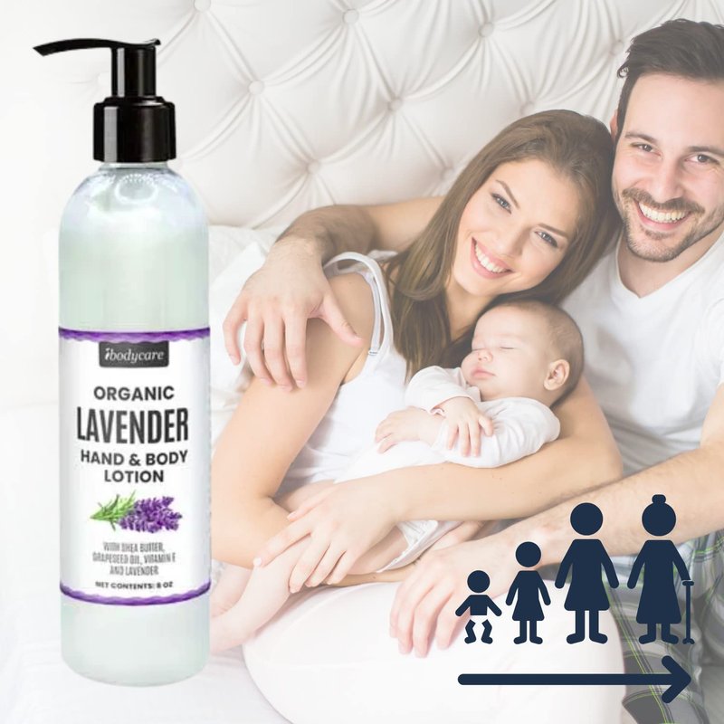 ibodycare Lavender Hand, Face, Body and Massage Lotion with Shea Butter, Grapeseed Oil and Vitamin E for Adults, Kids and Baby, 8 oz, Paraben Free, Organic, Natural, Reduce Scars, Skin Care
