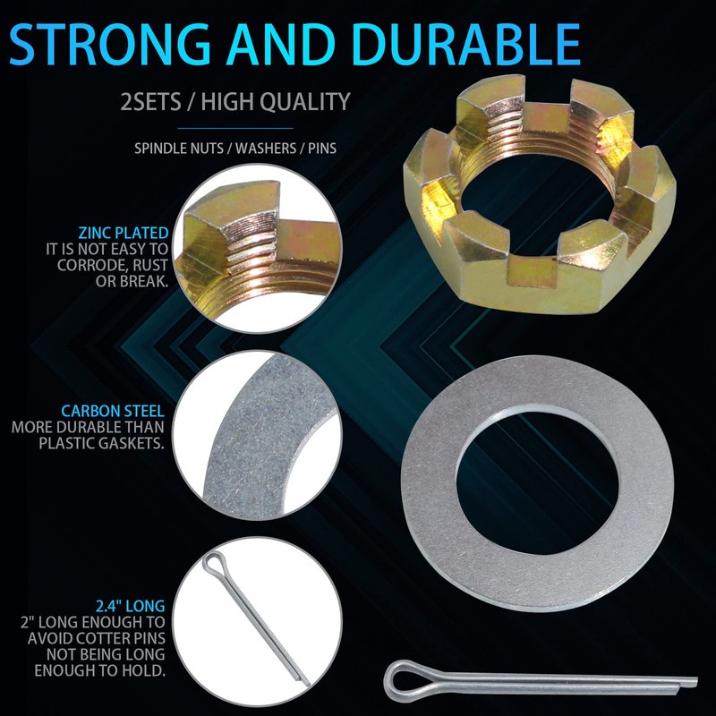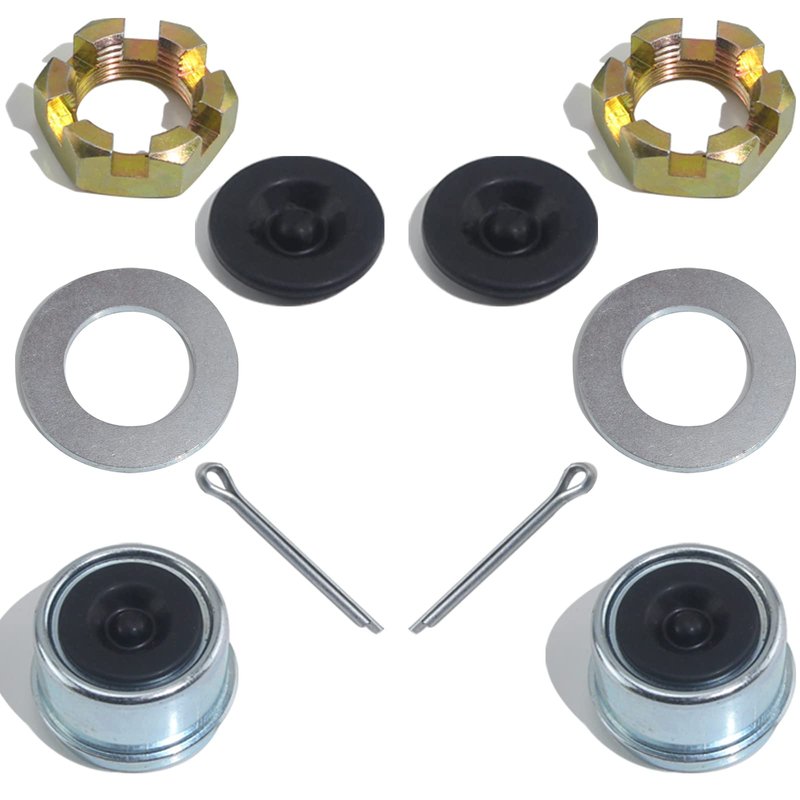 iBroPrat 2Set Trailer Nut Kits 1" Spindle Shaft Can-am Castle Nuts 1" Washers 2.25" Cotter Pins 1.98" Dust Covers and Rubber Plugs for 1" Shaft Spindle