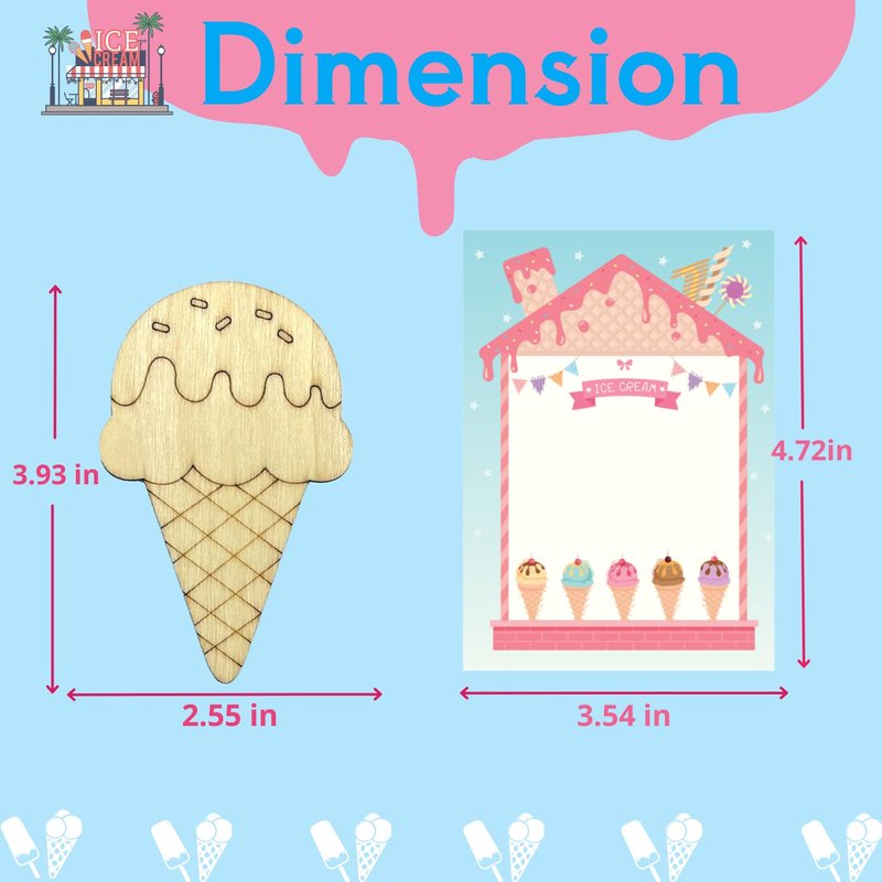 - πͺπππππππ π°ππ πͺππππ-π»πππππ π·ππππ πΊππ: This delightful ice cream craft kit includes 12 wooden ice cream cutouts, 12 ice cream theme cards, 12 mini watercolor sets, 12 brushes, 12 bubble wands, and 14 clear bags. A wonderful way for kids to express creativity while celebrating their love for ice cream.