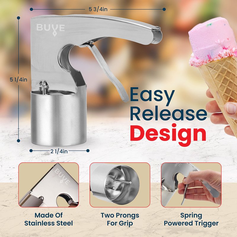 - MAKES SCOOPING AND CLEAN-UP EASY: Don’t let flimsy ice cream scoopers ruin your party! Our strong, easy-grip ice cream scoop with trigger release saves your hands and wrists from super cold ice cream and makes scooping simple. Plus, its non-stick stainless steel material makes clean up a breeze so the only thing you have to think about is the tasty ice cream on your plate!