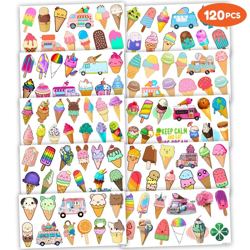 Ice Cream Temporary Tattoos 10 Sheets 120 PCS Ice Cream Cone Party Decorations Favors Supplies Sweet Theme Birthday Cute Stickers Christmas Gifts for Boys Girls Class School Prizes Carnival