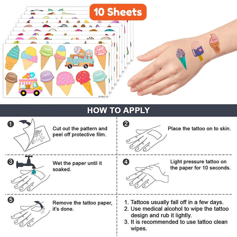 - Customer Service: Kindly contact us ASAP for any helps and all issues can be solved. This set of Ice Cream Temporary Tattoos party favors are abundant in quantity and diverse styles that can meet your various party needs or daily needs. Thanks so much for shopping with us!