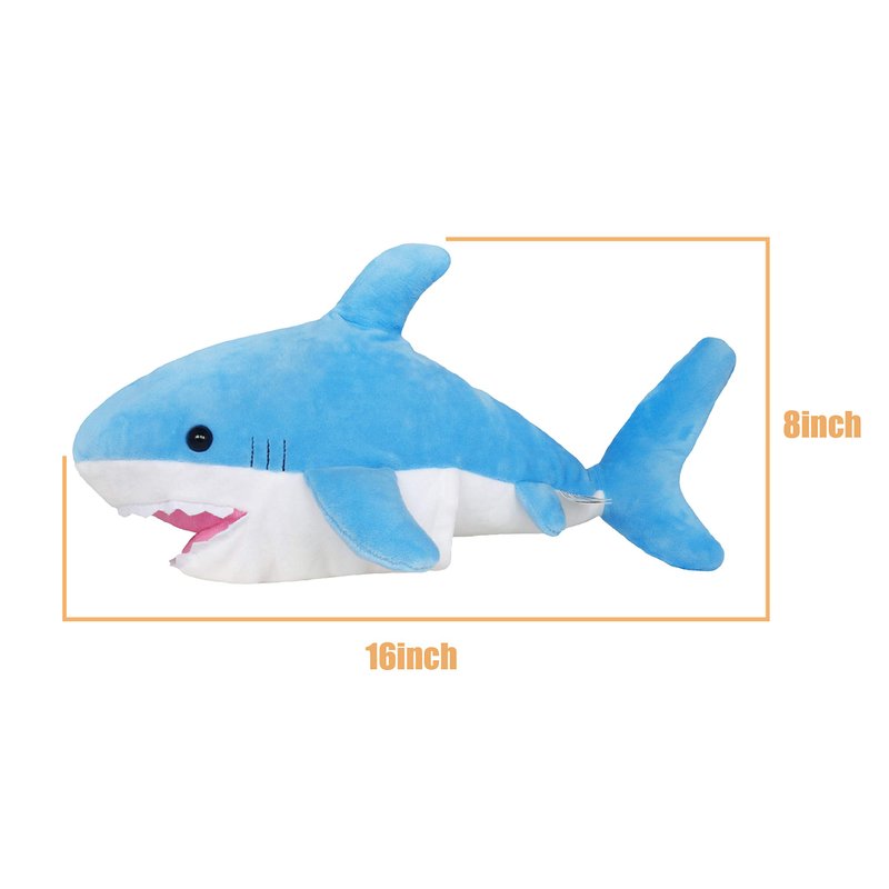 ICE KING BEAR Cute Blue Plush Shark Hand Puppet - Stuffed Animal Toy - 14 Inches Long