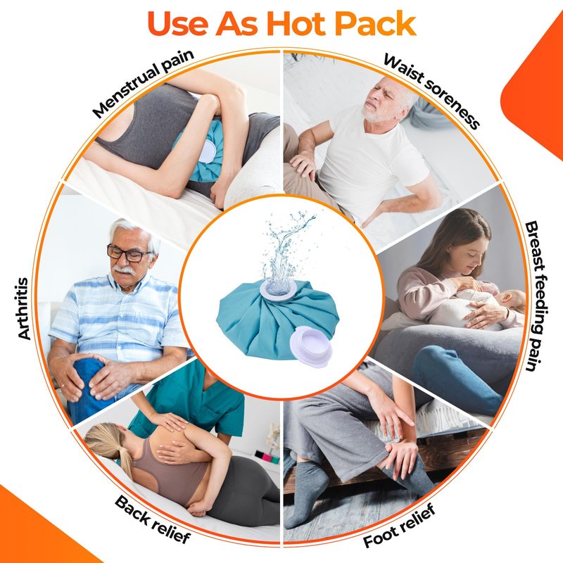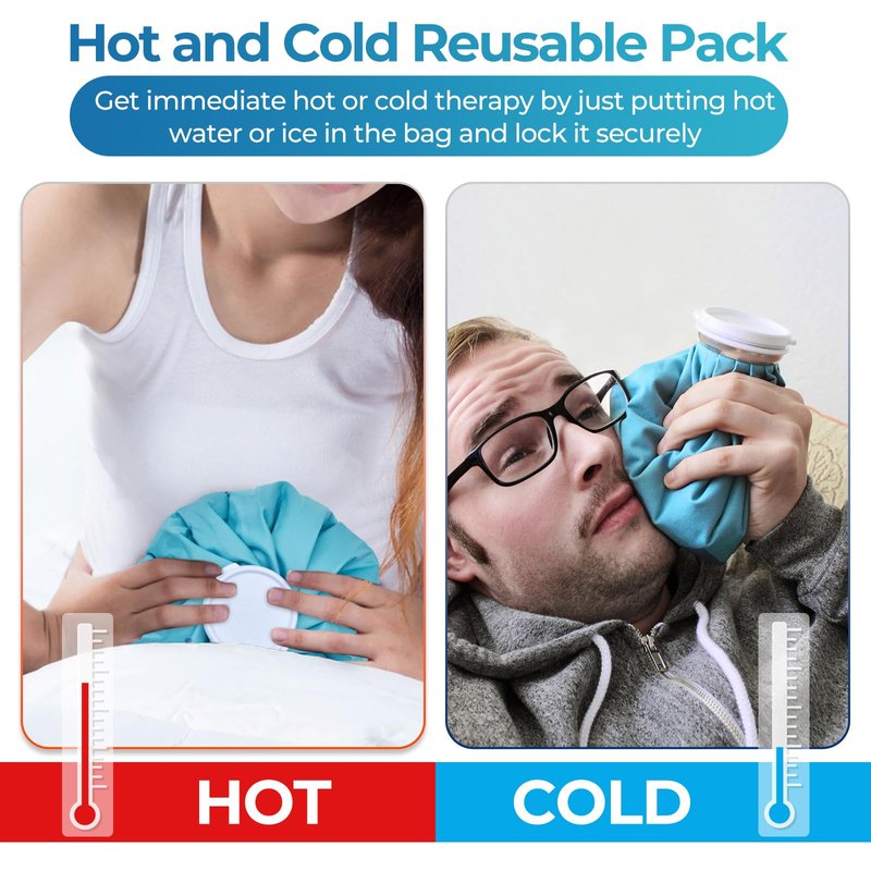 - HOT & COLD THERAPY: For cold therapy, simply fill the ice bag two third full with ice and water to relieve discomfort from headaches, bruises, migraines, muscle aches and swelling. For heat therapy, add hot water (not boiling, Notice: The temperature for hot water therapy is 50-60℃/122℉-140℉.) to help soothe an upset stomach, migraine, sinus and joint pain.