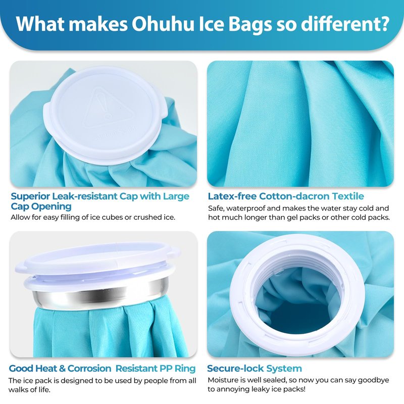 - 3 SIZES FOR DIFFERENT NEEDS: Whether your aches and pains are big or small, the Ohuhu reusable ice pack has a size for everyone. the 6”, 9” and 11” sizes will provide relief in all manner of situations.