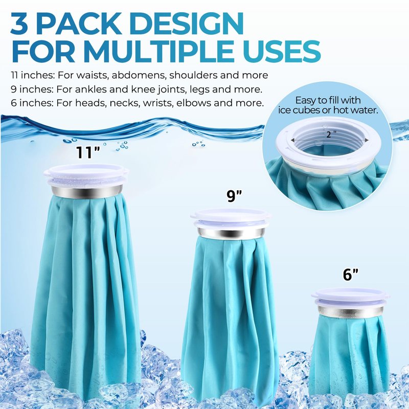 Ice Pack for Injuries Reusable: Ohuhu 3 Packs Ice Cold Packs with 2 Wrap Ice Bag Hot Water Hot & Cold Therapy Pain Relief for Knee Leg Injury No-Leak Waterproof Ice Bags 3 Sizes 6"/9"/11", Light Blue