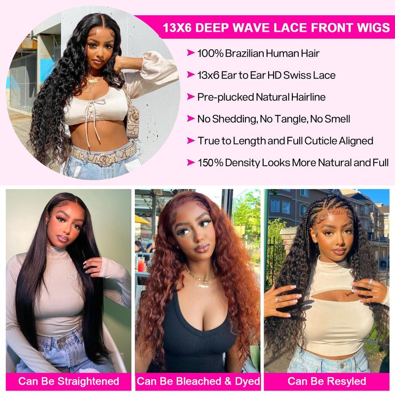 • 【Deep wave Human Hair Lace Front Wigs for All Occasion】: 13x6 Deep Wave Lace Front Wigs Human Hair, Beautiful for Daily Life, Like Weddings, Dates, Vacation Travel and Theme Parties, you can also Send It as Good Gift to Your Family and Friends.