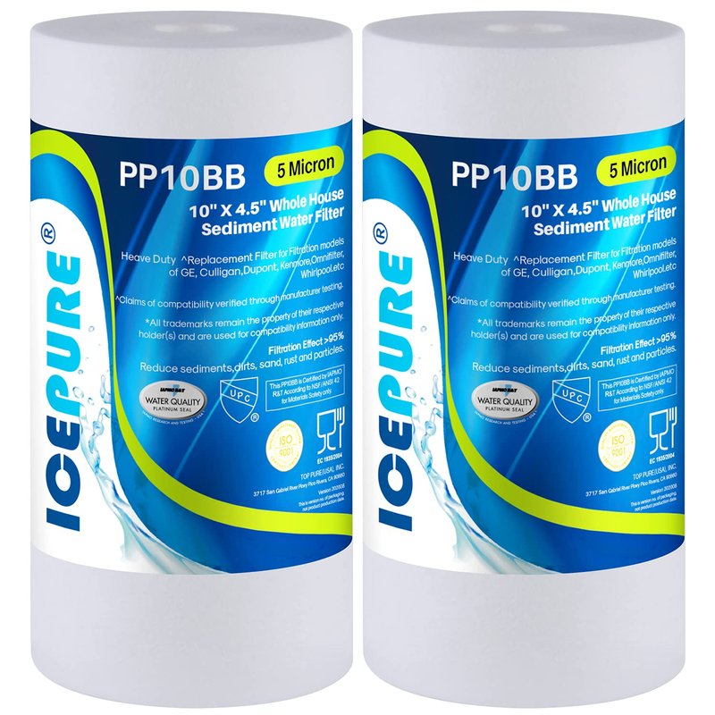 ICEPURE Whole House Sediment Water Filter 5 Micron 10" x 4.5" Compatible with Culligan RFC-BBSA, W15-PR, HD-950, WFHD13001B, GXWH35F, GXWH30C, 3M Aqua-Pure AP817, Whirlpool WHKF-GD25BB, PP10BB 2PACK