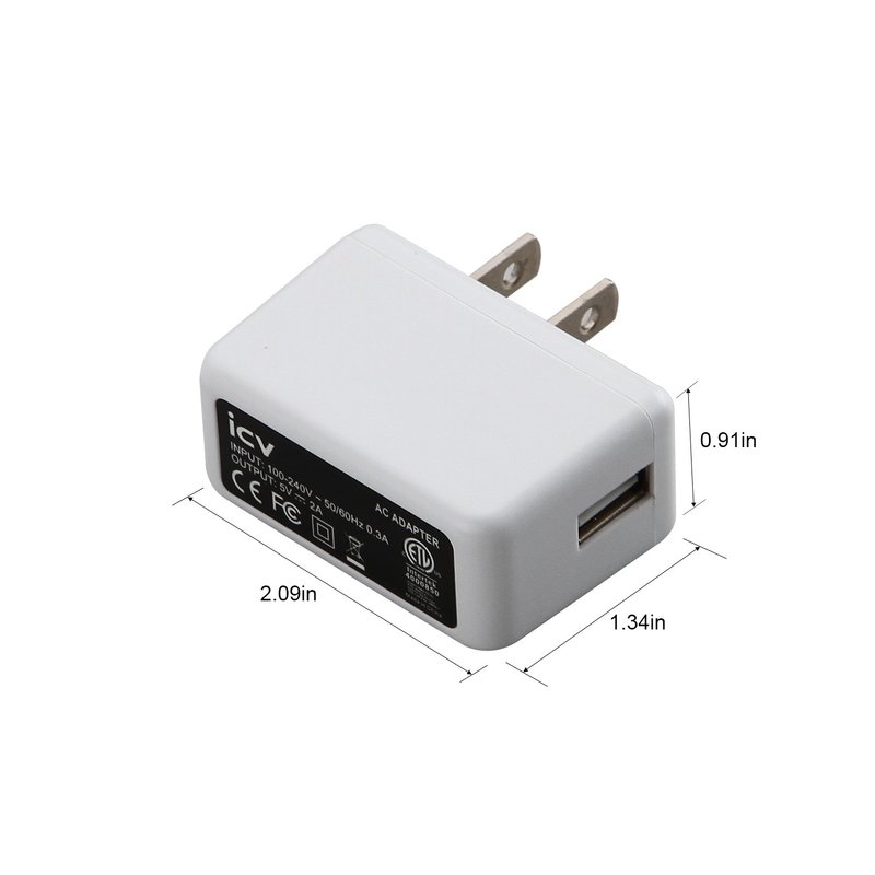 icv USB Wall Charger – 5V 2A 10W AC Power Adapter with US Plug for Phone, Tablet and Other Related USB Powered Devices Small and Lightweight – Designed for Safety(White)