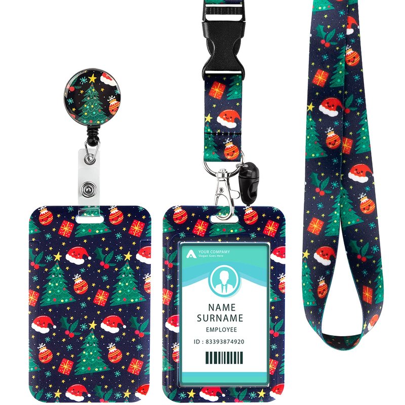 ID Badge Holder with Lanyard Christmas Decoration, Retractable Badge Holders Reels with Lanyards Adjustable, for Women Kids Teacher Nurses Doctor Student