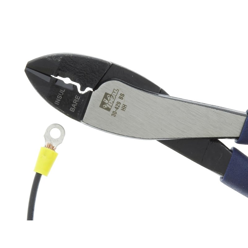 - Product Specifications: 9.75 in. long IDEAL Electrical Crimp Tool is equipped with Dipped-Grip PVC handles, knife-to-anvil blades, and high leverage pivots for easy crimping/cutting