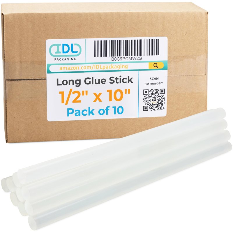 IDL Packaging 1/2" (0.43-inch) x 10" All-Surfaces Full-Size Hot Glue Sticks for Glue Guns, Clear (Pack of 10) - Superior Bonding Strength for Wood, Metal, Plastic, Glass, Tile, Cardboard, Masonry
