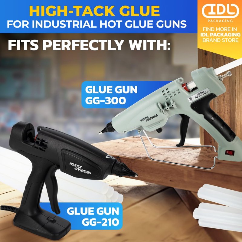 - BEST FIT » We recommend using these glue gun sticks with IDL Packaging GG-300 Industrial 300W Full Size Hot Glue Gun. It is a powerful and fast tool that is ready to work in just a few minutes of heating time. The right choice for heavy-duty applications like construction, carpentry, or repairs