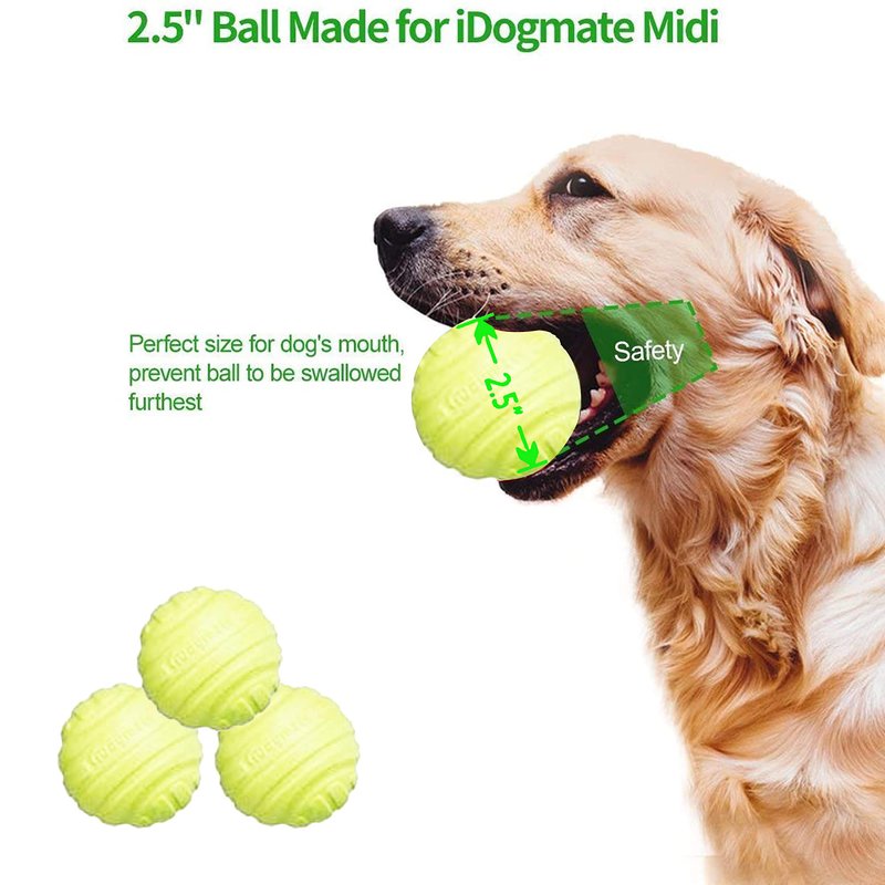 • Big-sized 2.5" tennis balls for iDogmate big Ball Launcher (sold separately),Designed for iDogmate Midi ball Launcher。