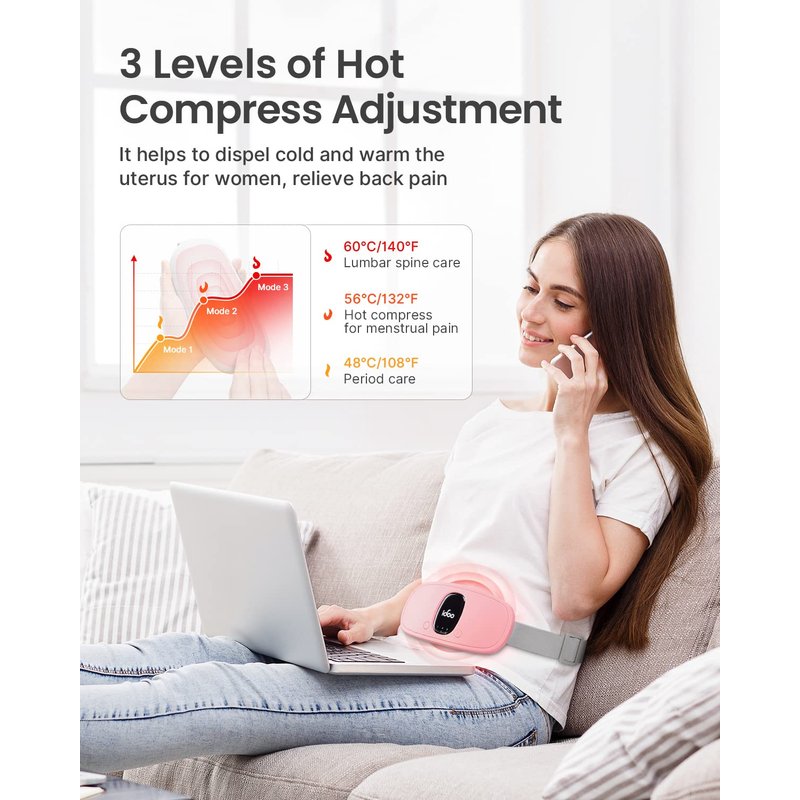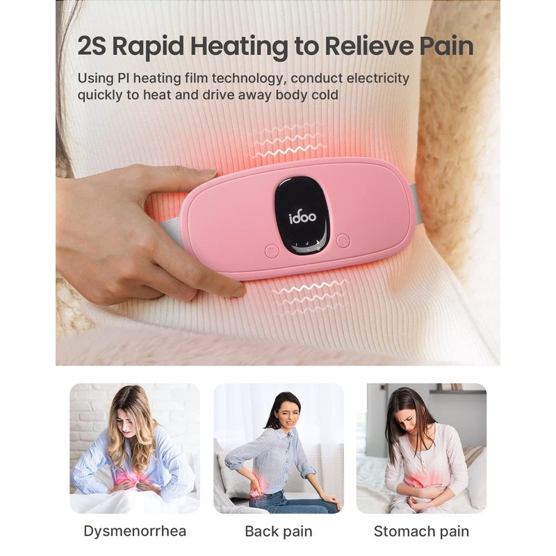 - Adjustable Massage Method: iDOO portable heating pad for cramps has 3 high-frequency vibration massage modes and 3 levels of heating. You can turn on heating and massage at the same time.Allow you customize a setting for yourself to achieve the ultimate comfort. Three switchable temperatures: 108°F/48°C, 132°F/56°C, 140°F/60°C