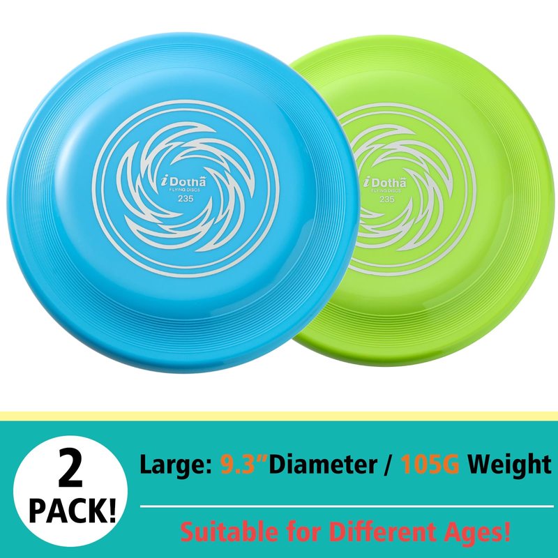 - 9.3" DIAMETER AND WEIGHS 105G - Enjoy the ultimate combination of weight and performance with 2 pack 105g flying disc that delivers exhilarating throws and accurate catches. Designed with aerodynamics in mind, they effortlessly glide through the air.