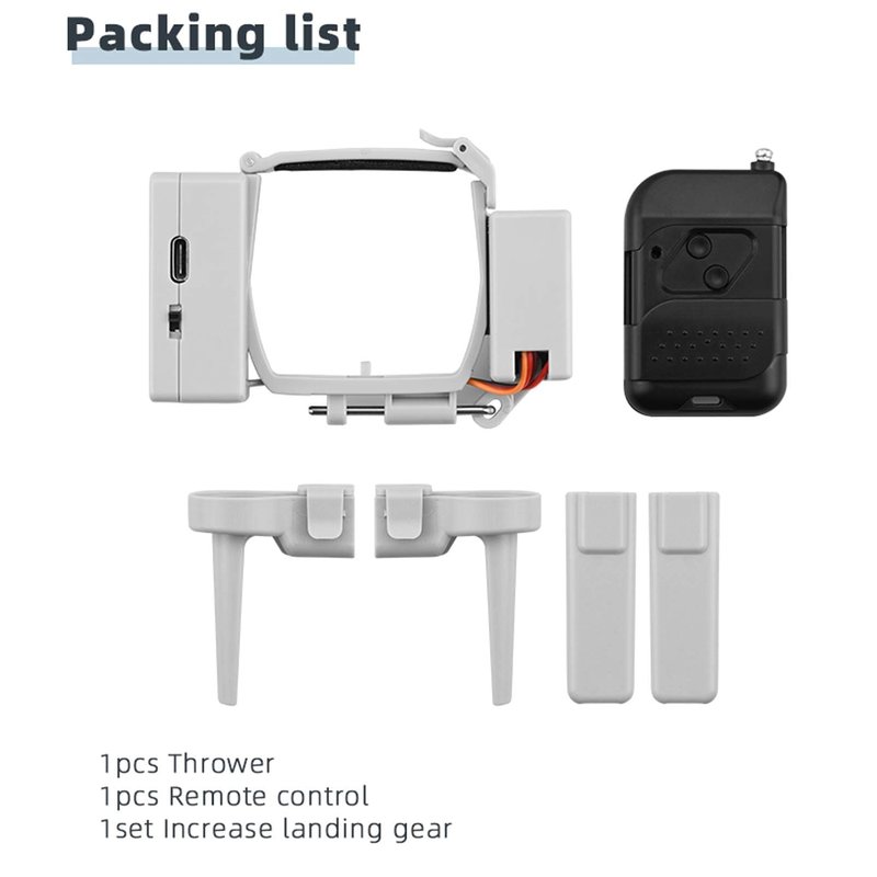 - 〖Applicable Models〗: The mini 2 drop device is suitable for DJI Mavic Mini / Mini 2. The delivery list includes 1 x airdrop, 1 x remote control, 1 x landing gear (set)