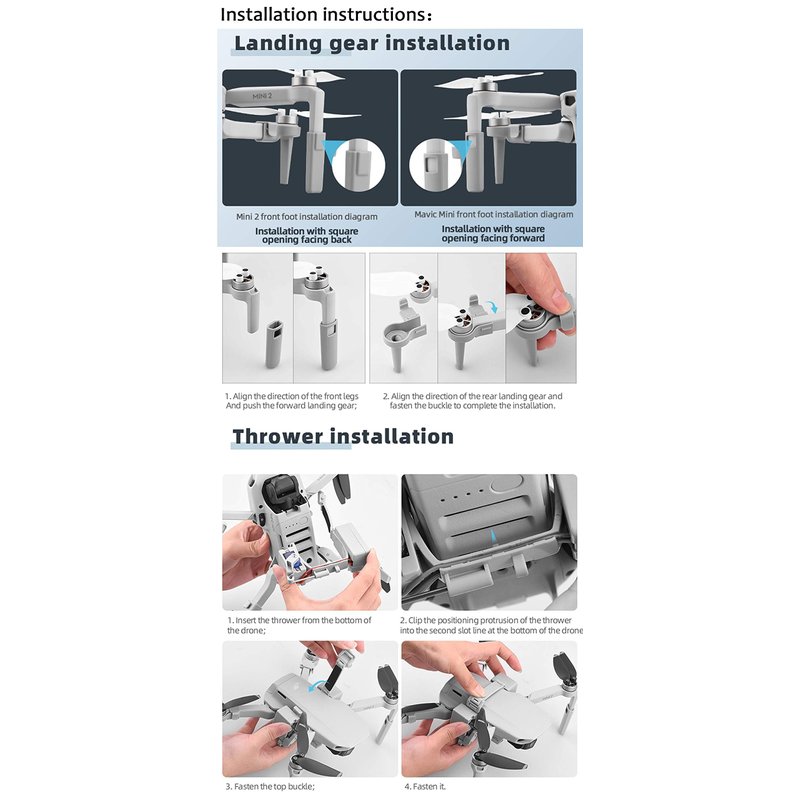 2. The bait release for dji mini 2 is with equipped with dji mavic mini landing gear, mini 2 landing gear;