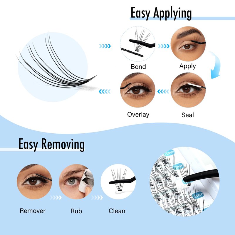 - High-Quality Cluster Lashes: These cluster eyelash extensions are carefully crafted from high quality materials and these false eyelashes are very lightweight. Ensure a comfortable and streak-free application.They are durable and have a natural feel.