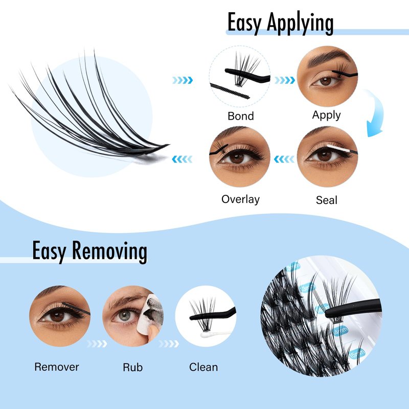- High-Quality Cluster Lashes: These cluster eyelash extensions are carefully crafted from high quality materials and these false eyelashes are very lightweight. Ensure a comfortable and streak-free application.They are durable and have a natural feel.