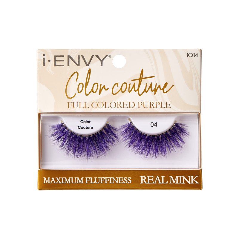 iENVY False Eyelashes Real Mink Color Couture Full Colored Lashes Maximum Fluffiness and Volume Fake Eyelashes (Purple)