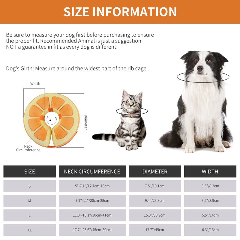 - 【Suitable Size】We recommend that you measure your furry dog's neck circumference before purchasing and get the most suitable size according to the recommended size chart. If the inflatable dog collar is a little too big for your dog and tends to fall off, try putting a daily collar together with a recovery collar to help keep the collar from falling off.