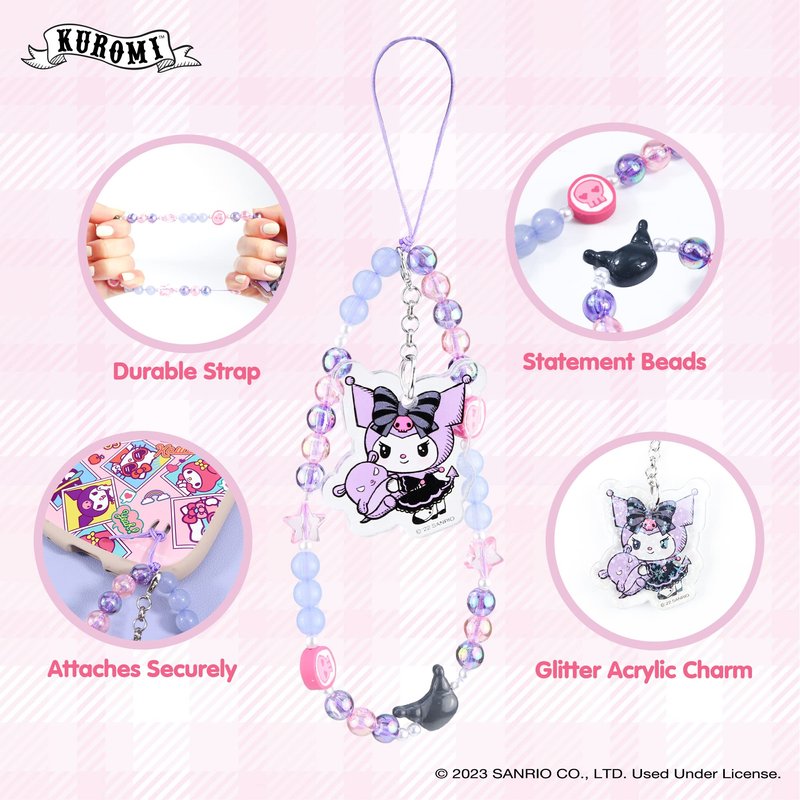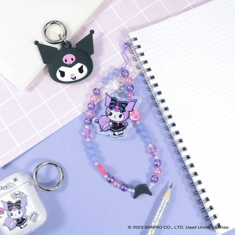 - HELLO KITTY AND FRIENDS BEADED CHARM STRAP ♡ Supercute wristlet for phones, wallets, and more with Kuromi and skull statement beads, plus a detachable iridescent keychain charm featuring Kuromi in her fortune teller outfit with friend Baku!