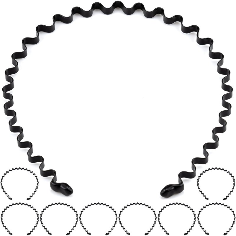 IFAMIO 8 Pcs Metal Hair Band for Men Women Hair Bands Simple Unisex Fashion Headbands Black Wavy Hair Hoop Outdoor Sports Head Bands Headwear Elastic Non Slip Hair Accessories