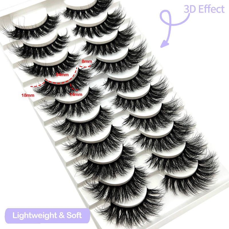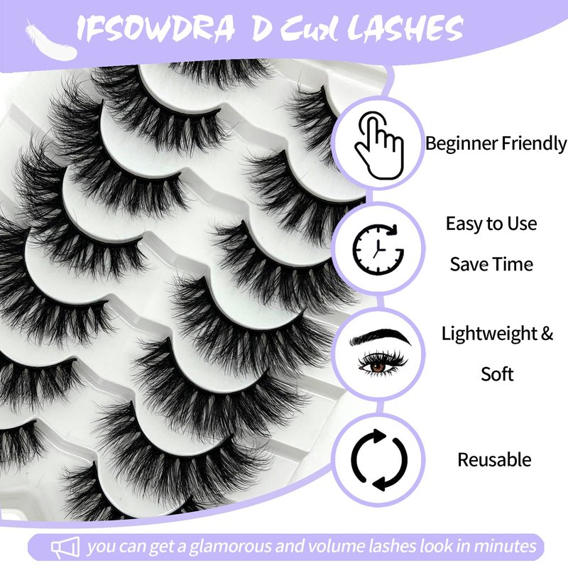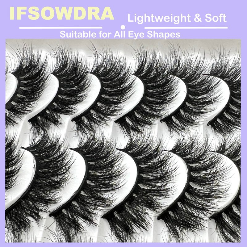 IFSOWDRA Mink Lashes Wispy Fluffy Cat Eye Fake Strip Lashes Pack 3D Volume Curly 18mm Long False Eyelashes Natural Look
