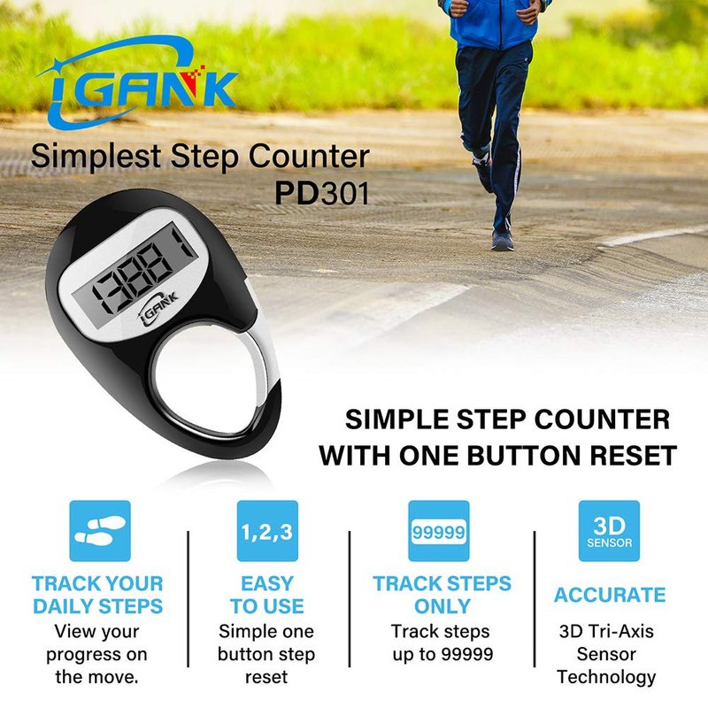 Easy to use, Lanyard-Free, no complicated settings,just pull the battery insulator tab out of the back,hook it to your belt loop or keychain.perfect for men,women,kids.If you want to know how many steps your dog has walked, you can hang it on the collar.Notice:iGANK PD301 pedometer count steps accurately. You can walk 200 steps to test it.If you have any problem,please feel free to contact us.