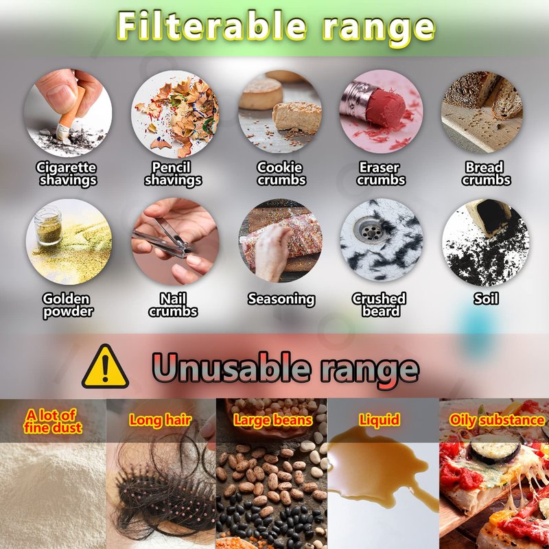- 【High Suction and Low Noise】Your table aspirator can suck up Rubber scurfy or Cigarette ash or Bread crumbs or Fine Particle or Dust Ash Pet Fur because of 1300Pa of suction power.Your table aspirator spins at up to 13500 rpm compared to 6000 rpm of other cleaner.Yet, it is quiet enough for you to read or sleep while it cleans.