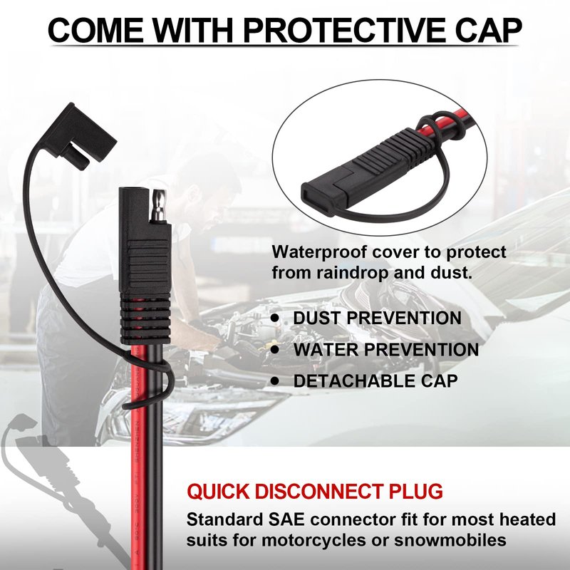 - Come with waterproof dust cap for protecting standard SAE type connector from rain and dust when closed, which stay clean and dry inside when you don’t use.