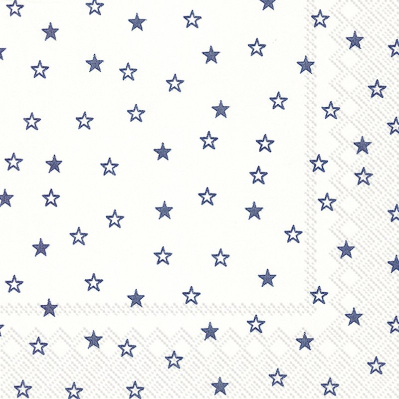 IHR Ideal Home Range Cocktail Napkins Disposable 3-Ply Paper Party Napkin Pack, 5" x 5", Little Stars White Blue, 20-Count