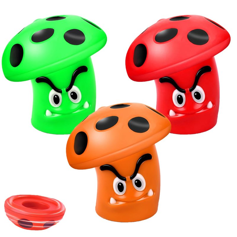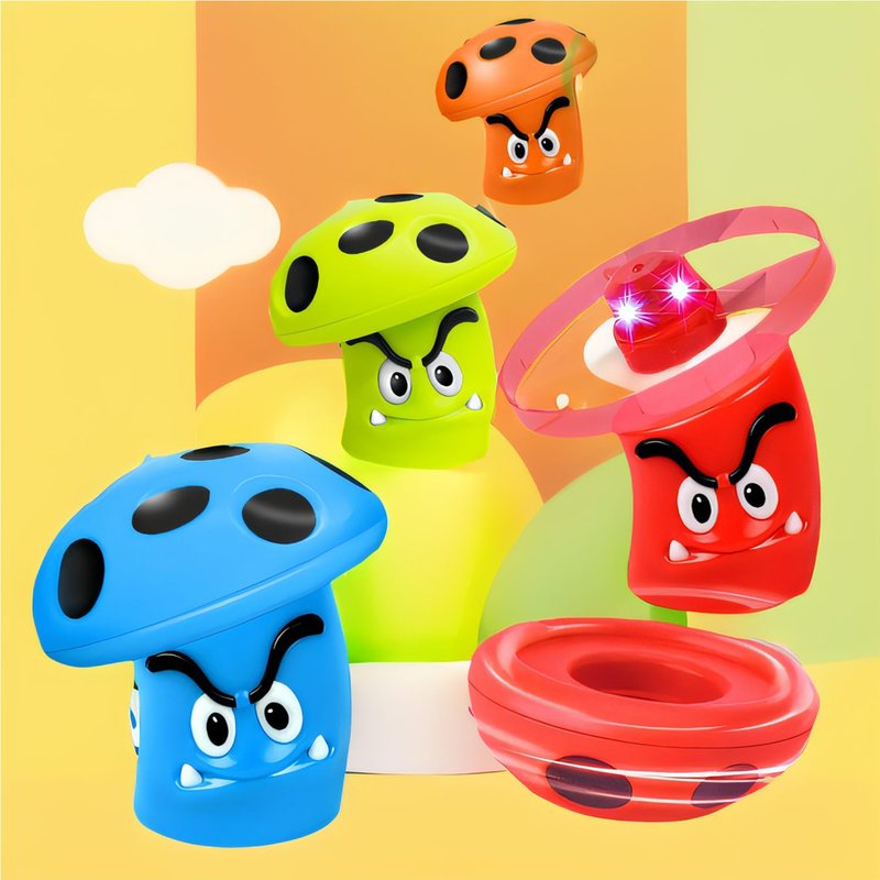 - Simple play: rotate the mushroom head, press the button on the bottom plate to launch the mushroom head and pop out, the mushroom head will rotate on the ground for a long time, and you can also play with multiple people, and the fierce collision lets the children enjoy the fun more
