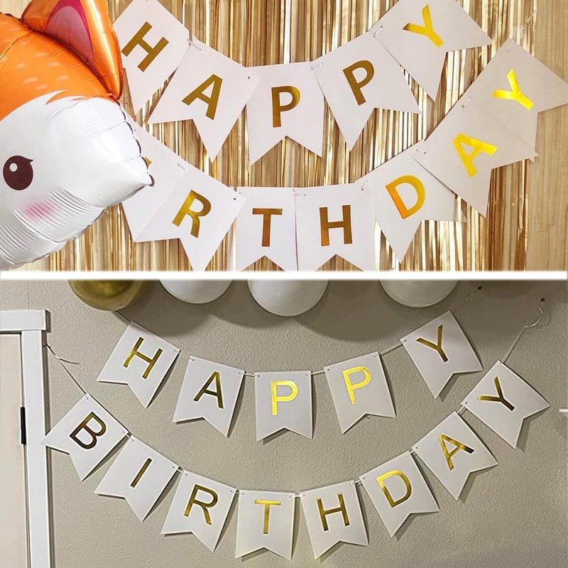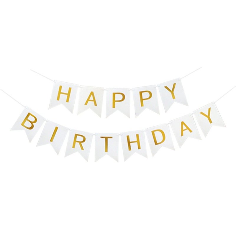 iiCheerful Happy Birthday Banner Birthday Party Supplies Garland Decorations Birthday Signs Nursery Hanging Decor (White)