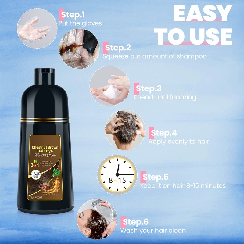 - Easy to Use at Home - No bowl or brush needed. Just put on the provided plastic gloves, apply the shampoo on your hair, massage for 5-10 minutes, and rinse well. You'll get the brown hair you want, saving time and money