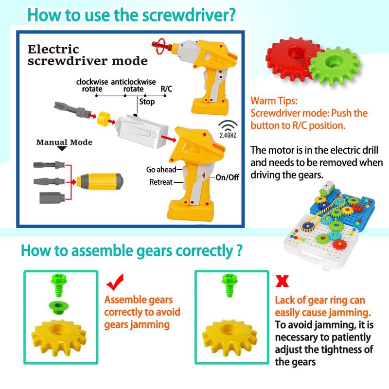 Gears toy for Kids, STEM Educational Construction Toys with Electric Screwdriver, Great Gifts for Children