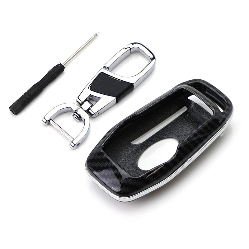 iJDMTOY Glossy Black Carbon Fiber Pattern Exact Fit Key Fob Shell w/Keychain Compatible with Ford/Lincoln 4/5-Button Intelligent Access Smart Key