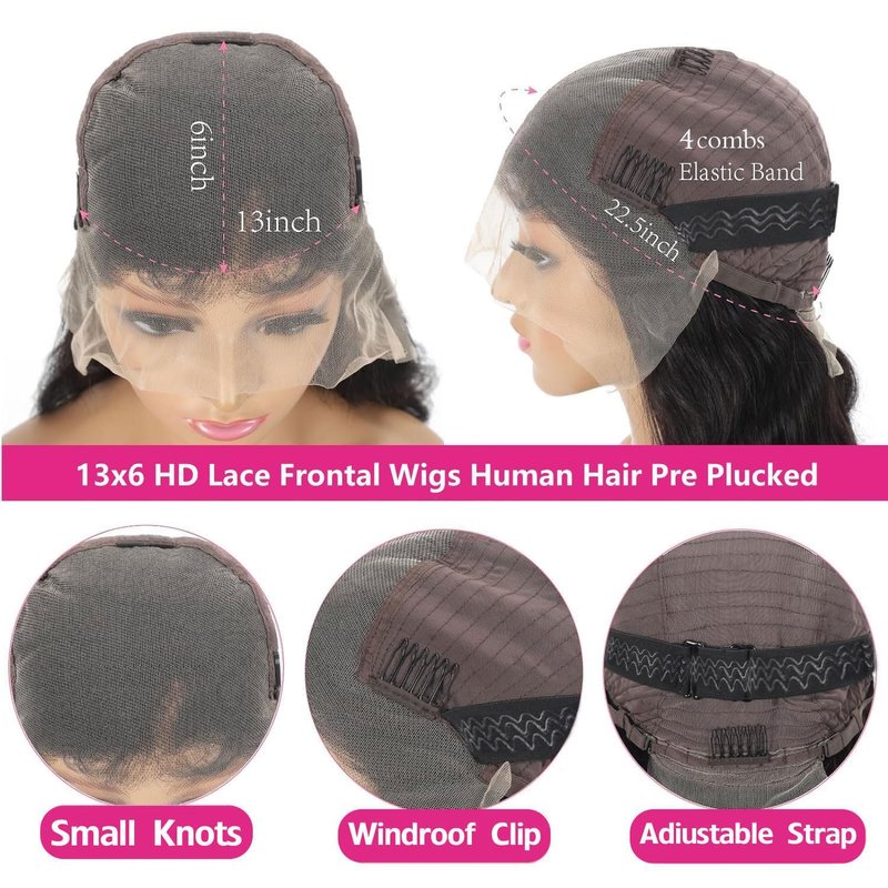 - 【13x6 Full Lace Frontal Wig Human Hair】: 13x6 Transparent Hd lace Melt Perfectly with All Skin. Large Area Lace Makes Your Scalp More Breathable,You Can Easily Design It Into Various Hairstyles, Such As Side Parting, Middle Parting, No Parting And High Ponytail, Baby Hair Around The Hairline Makes It More Natural And Beautiful.