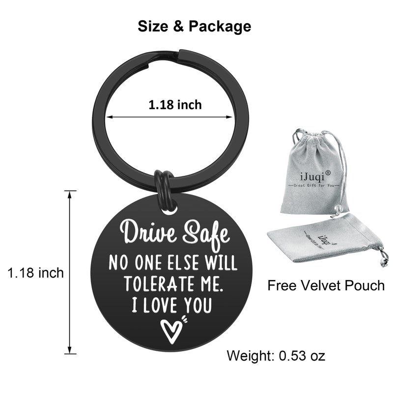 - ♥ DRIVE SAFE KEYCHAIN: Drive safe no one else will tolerate me I love you; Cute driver keychain gifts for boyfriend husband.